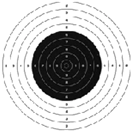 For small-bore and gallery rifle shooting, competitors typically fire ten shots at a paper target. The target is divided into ten scoring zones. If a shot crosses the line between zones, the higher score is usually awarded, known as "gauging in."