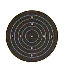 In small-bore prone shooting, the target is so small that ten individual targets are printed on a single card, and one shot is fired at each. If a shot touches a dividing line, the lower score is awarded, referred to as "gauging out."