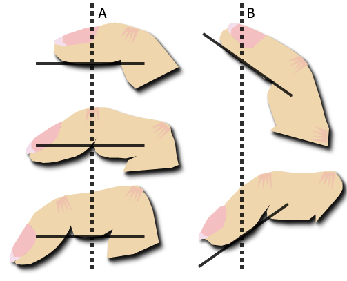 (B) shows a pull at an angle. Part of the pressure applied is wasted in pushing/pulling the rifle off target.