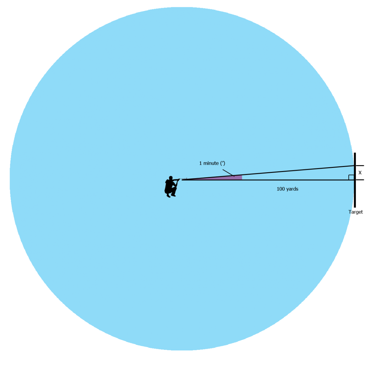 To work out how much you need to adjust your sight settings you need to know how much a minute of angle - (which is used on scopes and sights) will move a bullet at a certain distance.